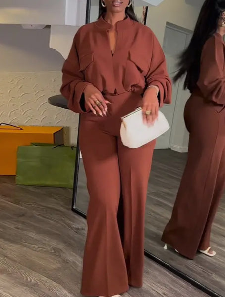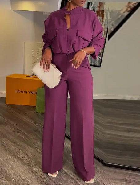 Effortlessly chic! Embrace luxury with our V-Neck Top & Wide-Leg Trousers Set. Available in rich brown and royal purple, this set combines comfort and sophistication. Pre-order now for limited stock. Sizes S-2X. Upgrade your fall wardrobe with our exclusive girlie217 set. #girlie217 #fallfashion #widelegpants #chicstyle #brownoutfit #pantsset #fashionboutique #styleinspo #ootd #wardrobestylist #luxeboutique #purplefashion