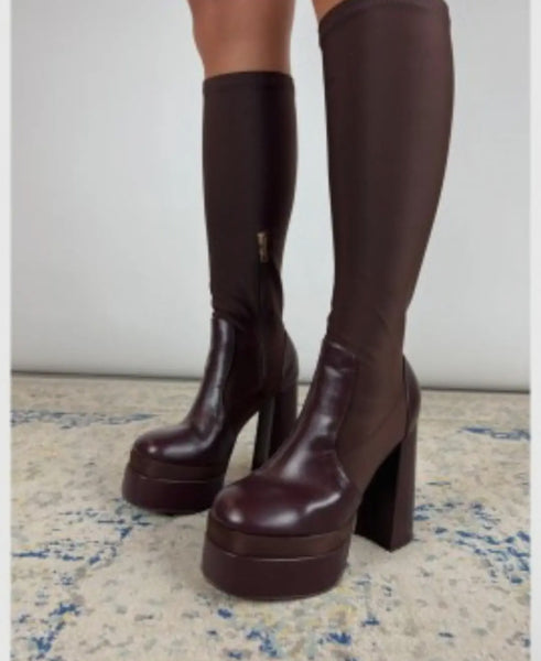 Step into confidence with our Classic Walk Stretch Calf Boots, designed to elevate any outfit with ease. Featuring a bold chunky heel, supportive platform sole, and a sleek stretch calf construction, these boots deliver both comfort and statement-making style.