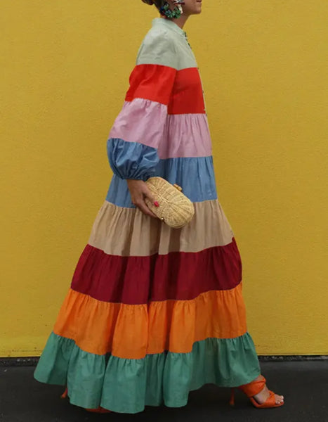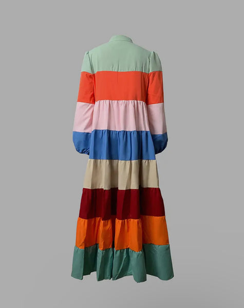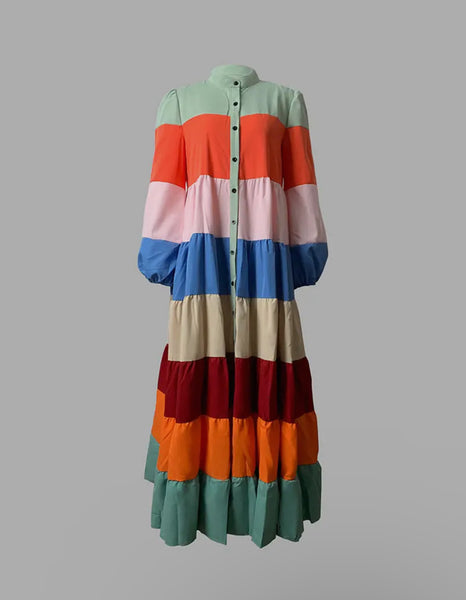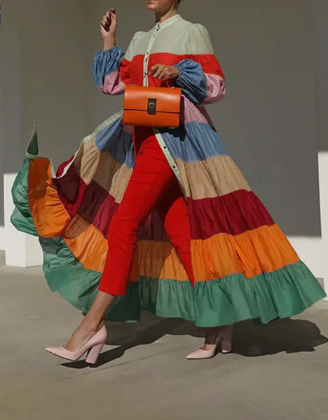Introducing our Long Sleeve Button Contrast Strip Stand Collar Outerwear - the statement piece you've been waiting for. Bold, colorful, and unforgettable, it's versatile enough to wear as a dress or layer over sleek pants. Perfect for making a lasting impression.