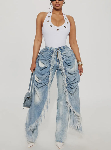 Crafted with premium stretch denim for a comfortable, flattering fit, these jeans offer effortless styling from day to night. Whether you’re stepping out for brunch, hitting the city, or creating a bold boutique-worthy outfit, this unique design gives you a standout edge.