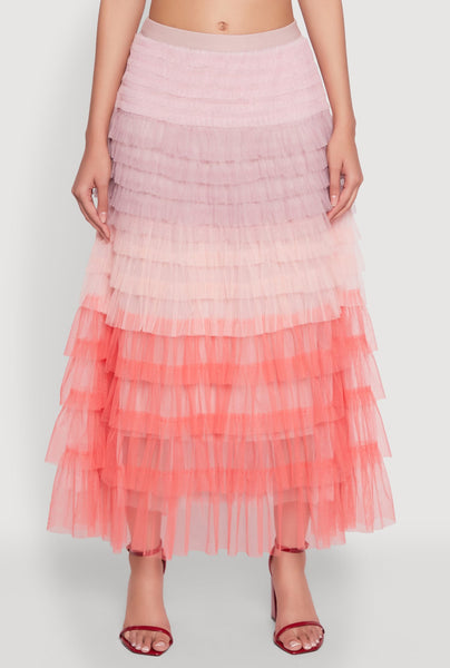 Get ready to turn heads with the Color Blocked Tulle Tiered Skirt, a must-have for your wardrobe that combines playful style with effortless elegance. Its maxi length and layered tulle design create a dreamy, flowy silhouette perfect for any occasion. Whether you're heading out with friends or dressing up for a special event, this skirt adds a pop of color and a touch of whimsy to your look. Feel confident and fabulous in this lined, high-waisted piece that makes every moment feel like a runway moment.