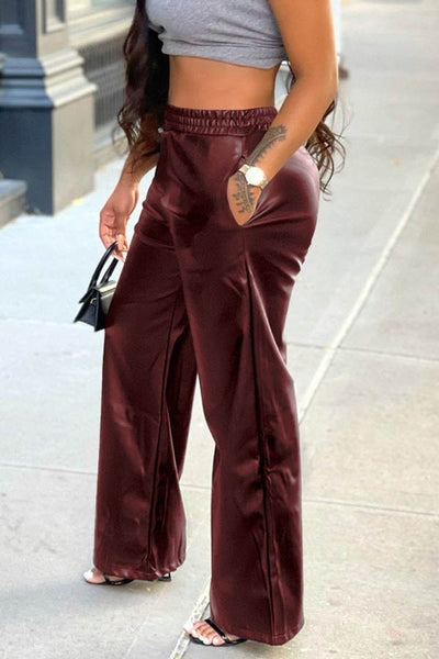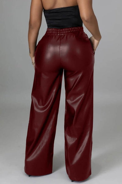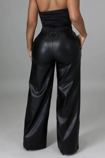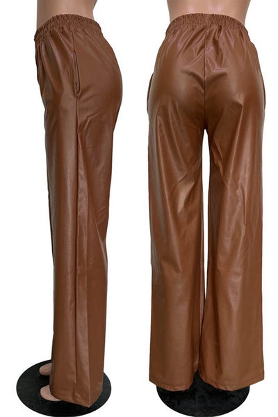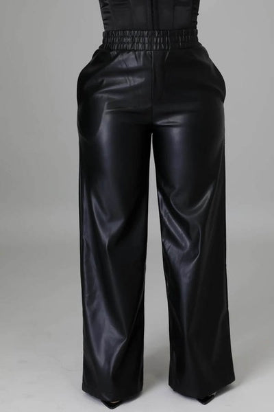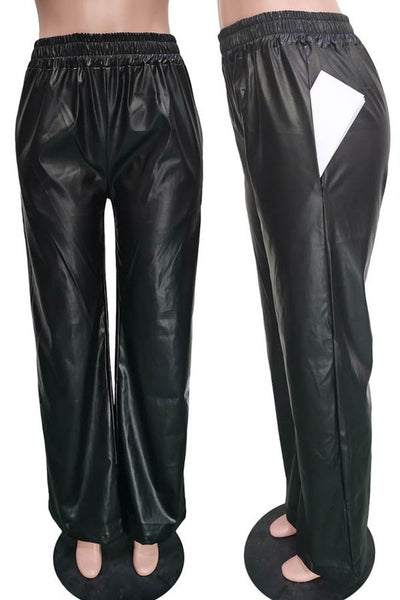 Look fierce and fashionable in our Fly Girlie Faux Leather Pants! Made with high-quality faux leather, these pants are sure to elevate any outfit. With an elastic waist for ultimate comfort and pockets for convenience, these pants also boast a great relaxed fit and a wide legged design. Stay stylish and comfortable in these must-have pants.