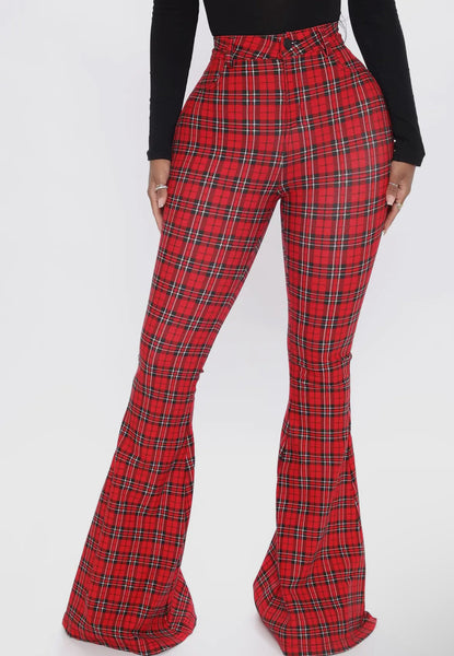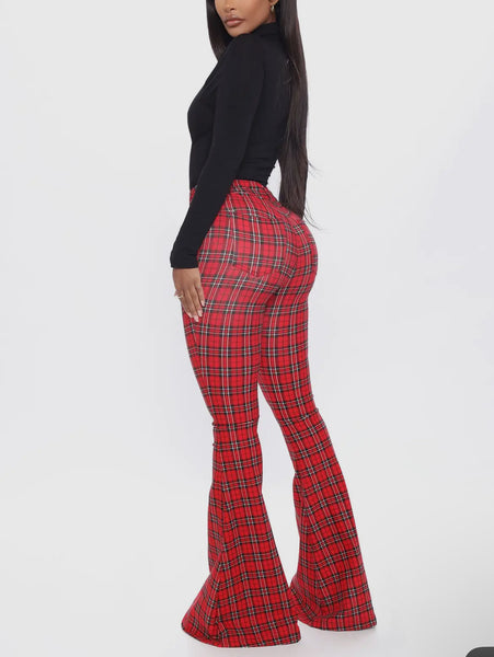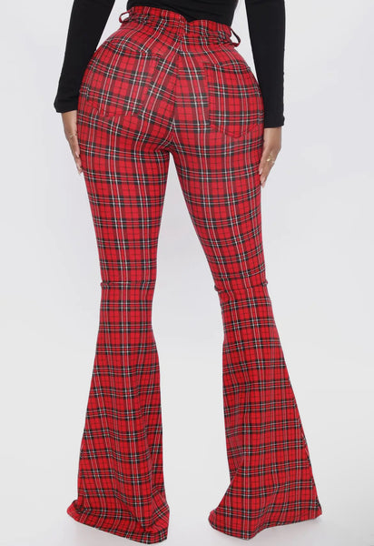Discover chic and confident style with our Plaid Flare Pants. Crafted with a striking red plaid pattern and a flattering flared silhouette, these pants are perfect for any occasion. Elevate your wardrobe and effortlessly pair them with a variety of tops for a versatile look. Add comfort and fashion to your wardrobe with these essential pants.