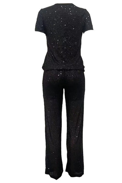 Featuring a solid set design, short sleeves, and long pants, this set is perfect for any occasion.