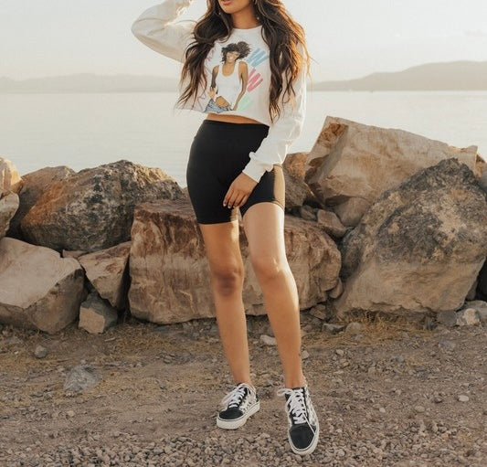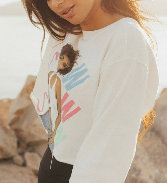 Capture the essence of Whitney Houston with this Vintage Crop Sweater. This long sleeved top is a tribute to her iconic voice, grace, and beauty. A must-have for fans and a statement piece for any wardrobe. Add to your cart and show your love for a legendary artist.
